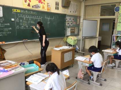 6/18 数直線の上で見つけよう(2年生 算数) 公開日 2021/06/18 更新日 2021/06/18 お知らせ 数直線を読む練習をしました。目盛りにふられた数字によって、1目盛りが1になったり10、100になったりするので注意して読まなければなりません。 ものさしと方眼ノートを使って、自分で数直線を書く練習もしました。