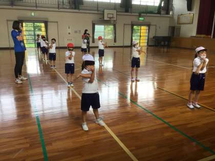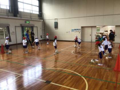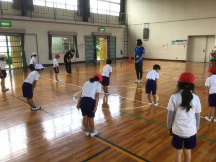 今日は一緒に準備体操やボールを使った鬼ごっこなどをしました。