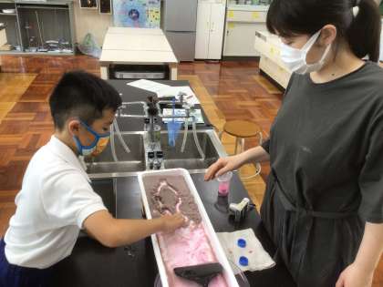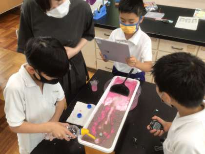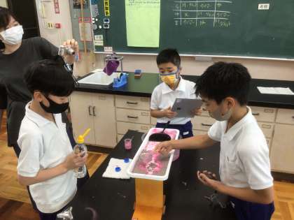 6/24 流れる水のはたらき(5年生 理科) 公開日 2021/06/24 更新日 2021/06/24 お知らせ 模型を使って、川を流れる水のはたらきを調べています。 各自が調べてみたいテーマを考え、「川の傾きが変わると」「川の形が変わると」「水の量が増えると」水の流れ方がどう変わるのかを協力して調べました。 細かい変化まで観察できるように、実験の様子を動画で撮って、後で確かめられるようにしました。 …果たして、最初に考えた予想は合っていたのでしょうか?