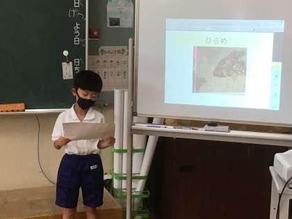 6/28 どうやって身を守るのかな(1年生 国語) 公開日 2021/06/28 更新日 2021/06/28 お知らせ ヤマアラシやアルマジロなどの動物が、どうやって敵から身を守っているのかを伝える文の書き方を知りました。そこで、他の動物はどんなふうに身を守っているのかを図書室の本などを使って調べてみることにしました。調べたことをタブレットを使ってまとめ、みんなの前で発表しました。