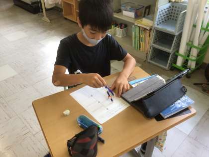この文をを書くためには、作図の手順を理解し、相手に分かりやすく伝えるために必要な情報は何かを判断する力が必要です。算数の授業を通して、コミュニケーションに必要な力も身につけていきます。