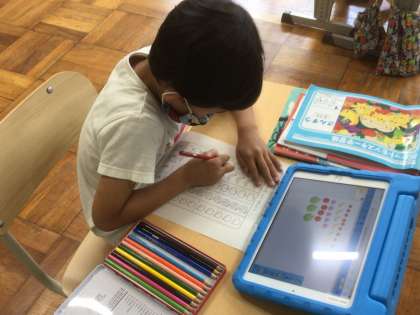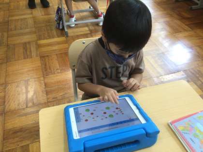 7/5 どのくだものがおおくあるかな?(1年生 算数) 公開日 2021/07/06 更新日 2021/07/06 お知らせ リンゴやミカンなどの果物の個数を比べます。 タブレット上で操作すると、種類ごとに並べ替えることができます。それがすんでから、1種類ずつ数を数えればどれが多いか分かります。 でも、もっと分かりやすい方法があるようです。「絵グラフ」という方法です。書き方のきまりを教えてもらい「絵グラフ」を作ってみました。本当に、どれが多いかすぐ分かります。便利そうです。