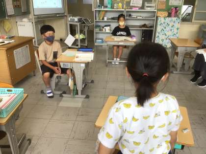 上手に話せるようになるためには、上手に聞いてあげる人が必要です。最後に、話し手の言葉をきっかけにして、質問したり感想を言い合ったりして、話を膨らませる練習をしました。