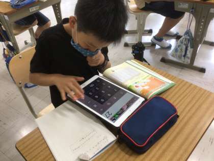 7/6 資料の調べ方(6年生 算数) 公開日 2021/07/06 更新日 2021/07/06 お知らせ 5年生で「平均」について勉強しました。全体の凸凹を「平らに均す(ならす)」という考え方です。便利ですが、資料のちらばり具合いを知ることはできません。6年生では、この「ちらばり具合い」を調べる方法を学習します。 今日は、復習を兼ねて、タブレットの計算機機能を使って資料の平均を求めました。入力した値にはチェックを入れておくとミスが防げますね。