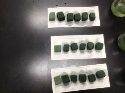 7/8 流れる水のはたらき(5年生 理科) 公開日 2021/07/08 更新日 2021/07/08 お知らせ 川原に転がっている石には、大きなものや小さなもの、ゴツゴツしたものや丸っこいものがあります。なぜでしょう? ビンの中に、水と吸水スポンジ(オアシス)を入れて振ります。振った回数を50回ずつ増やしていき、大きさや形がどうなるか調べます。 結果は写真のとおりです。どんなことが分かるかな。