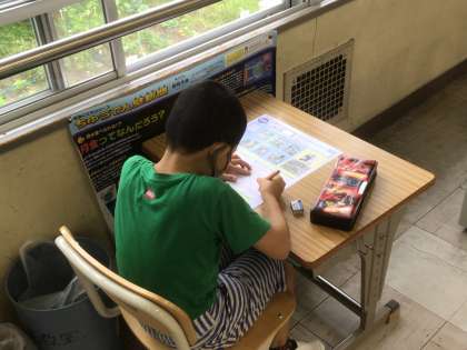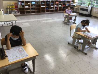 今日はテストデーだったようです。4時間目に国語、5時間目に社会のテストをしました。
