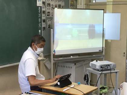 先生の演示実験の様子をタブレットで撮影し、おもちゃが変化する様子を繰り返し見ながら大きさが変わることを確かめました。タブレット、本当に便利です…。