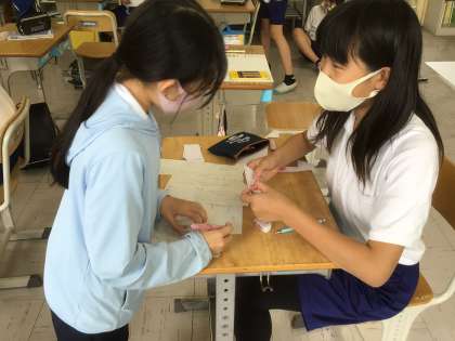 本やインターネットで調べたたくさんの情報の中から伝えたいものを選び、レイアウトを考えて新聞やポスターなどにまとめます。下級生に出すクイズの内容も精選されてきたようです。