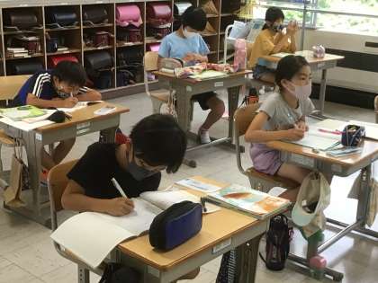机のまわりや持ち物の中で、垂直や平行の関係になっているものを探したりして確認しました。