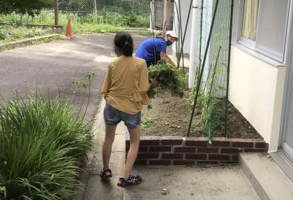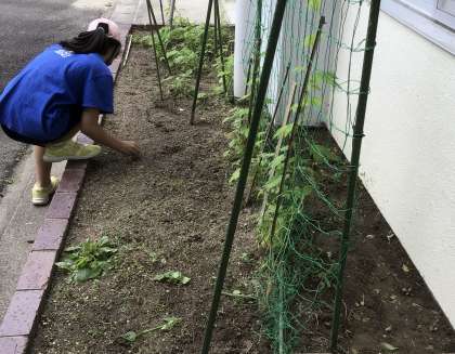 7/15 学級園がきれいになりました(4年生) 公開日 2021/07/16 更新日 2021/07/16 お知らせ 夏の日差しと十分すぎるほどの雨で、先週までは草が茫々(ぼうぼう)だった4年生の学級園ですが、気づいた子たちが休み時間に草取りをしてとてもきれいにしてくれました。ゴーヤーもぐんぐん伸びそうです。