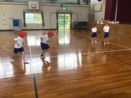 7/16 表現あそび(1・2年生 体育) その2 公開日 2021/07/16 更新日 2021/07/16 お知らせ 海の生き物グループのシナリオは、 「ペンギンが歩いているところにイルカがやってきました。イルカはペンギンたちに一緒に泳ごうよと声をかけます。ペンギンたちは喜んでみんなで楽しく泳ぎました」 というものです。誘われて嬉しい気持ちを伝えられるかな?