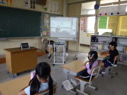 緊急事態宣言下であることを考慮してオンラインで全校朝会を行いました。