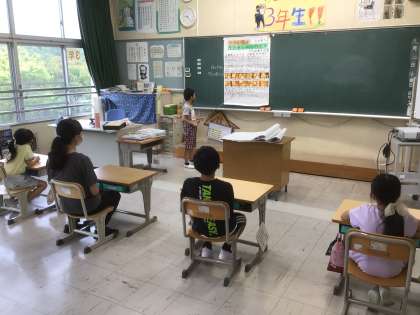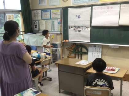 今日は、3年生と5年生がそれぞれ理科の授業で、自分の調べてきた研究内容について発表していました。