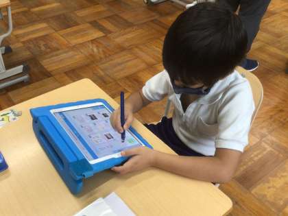 9/8 物語を読もう(1年生 国語) 公開日 2021/09/08 更新日 2021/09/08 お知らせ 「かいがら」という物語を読みます。 初めての今日は、先生と一緒に音読した後、登場人物や話のあらすじをみんなで確かめました。 話の流れを確認するために使ったワークシートは、タブレットを使って担任に提出しました。タブレットやタッチペンを上手に操作できるようになってきました。