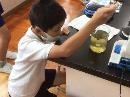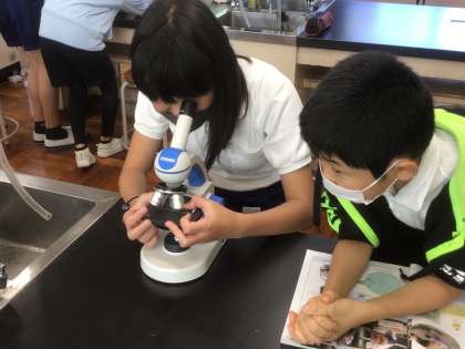 9/10 水の中の生き物を調べよう(6年生 理科) 公開日 2021/09/10 更新日 2021/09/10 お知らせ 池などにいるメダカなどの小さな魚は何を食べて生きているのでしょう。 児童玄関の前にあるひょうたん池の水を取ってきて顕微鏡で観察してみたら、微生物が何種類か見つけることができました。メダカが食べているのはこれらの微生物なのでしょうか?