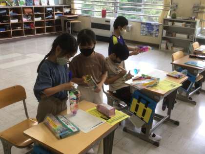 「今はコロナでトンネルの中。暗いトンネル(ペットボトル)を抜けると明るいから底を明るい色にした」という子がいました。きっと明るい未来が待ってます!