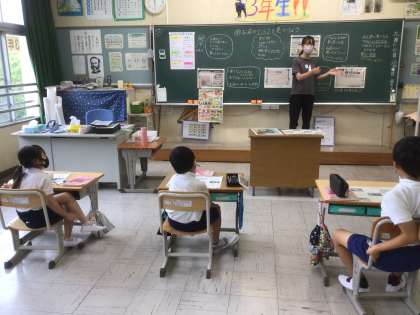 3年生は家族で利用することの多いスーパーや食料品店の仕事について調べています。今日は、お客さんに安心して利用してもらうためにどんな工夫をしているか、事前に調べておいたことをもとに話し合いました。
