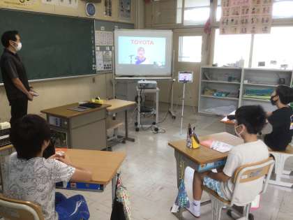 5年生がオンラインで、トヨタ自動車が行っている車づくりについて勉強しました。