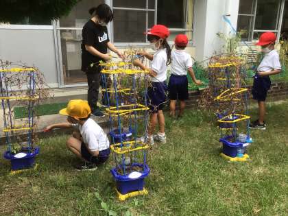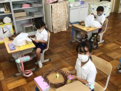 夏の間育ててきたアサガオのつるを使ってリース作りをします。