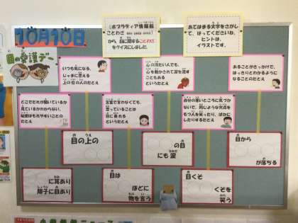 保健室前の掲示板が「“目“に関することわざクイズ」に変わりました。