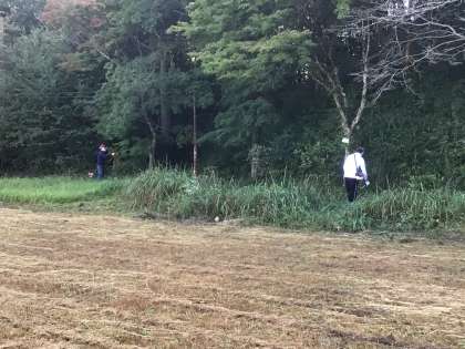 今日は、PTAのみなさんが奉仕作業として運動場周辺の草刈りをしてくださいました。