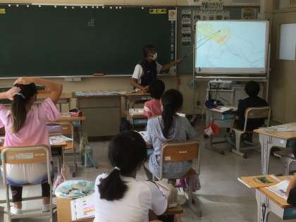 10/14 防災について考えよう(4年生 社会) 公開日 2021/10/14 更新日 2021/10/14 お知らせ 豊田市が作成した「土砂災害ハザードマップ」を見ました。自分たちの家の近くや通学路の多くが、崩壊や土石流の警戒区域に含まれていることに驚いた様子でした。 どんな危険が潜んでいるかを知り、必要な備えや万が一の場合の対応法について学んでいきます。
