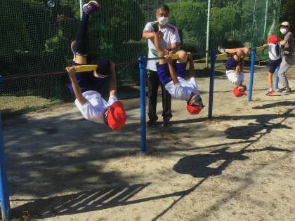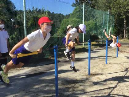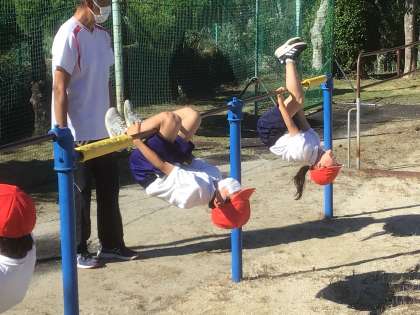 10/15 鉄棒(3・4年生 体育) 公開日 2021/10/15 更新日 2021/10/15 お知らせ 鉄棒の学習が始まりました。 初日の今日は、「ツバメ」「ゆりかご」「つるしがき」などのウオーミングアップの技で体を慣らした後、自分が今できる技を確認したり、どんな技にチャレンジしたいかを考えたりしました。 単元の最後には、上がり技、まわり技、下り技を組み合わせたオリジナルの演技の発表会を行います。