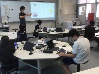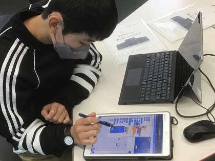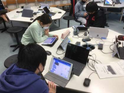 タブレットの「スクラッチ」というプログラミング教材を使って、シューティングゲームのプログラミングを行います。今回のチャレンジするプログラミングは、