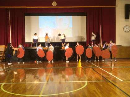 10/29 学芸会下見会(4年生) 公開日 2021/10/29 更新日 2021/10/29 お知らせ 4年生の「どんぐりと山猫」の下見会を行いました。 セリフや動きを自分たちで相談して決めているだけあって、みんな楽しそうな表情で演じていました。 残り1週間で、「お客さんが見やすい、聞きやすい」を意識して練習を仕上げていきます。