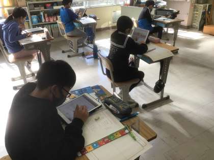 織田信長、豊臣秀吉、徳川家康の三武将から好きな武将を選んで、功績や政策などについて調べています。