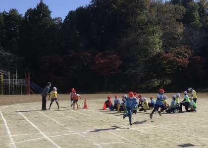 赤白対抗で家族が応援しやすいように兄弟姉妹が赤組と白組で分かれることはありませんが、全校リレーでは異なるチームに入っていますのでご承知おきください。
