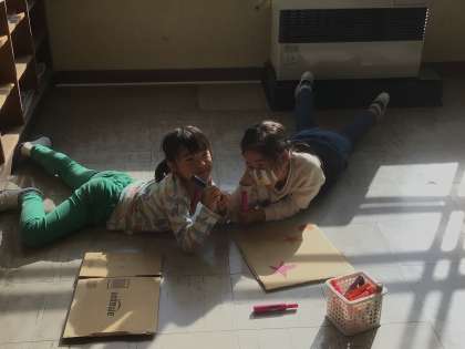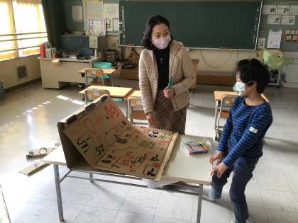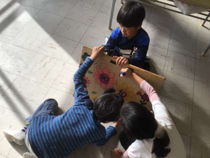 11/16 何ができるかはお楽しみ?(2年生 生活科) 公開日 2021/11/16 更新日 2021/11/16 お知らせ 2年生がダンボールとマジックで何かを作っています。花や星の絵やいろいろな数字が書かれていますが、残念ながら、何に使うものかは教えてもらえませんでした。 完成したらまた紹介します。お楽しみに…。