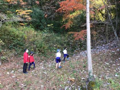 5年生が、VS活動(=ボランタリーサービスの略)の一環として、最近落ち葉が増えて歩きにくくなってきた「ひよどりコース」の清掃に取り組むことにしました。