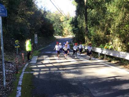 坂を登り切ると、運動場にいる上級生の「がんばれ〜」という声援が聞こえてきます。へとへとですが、もう少し頑張れそうです。