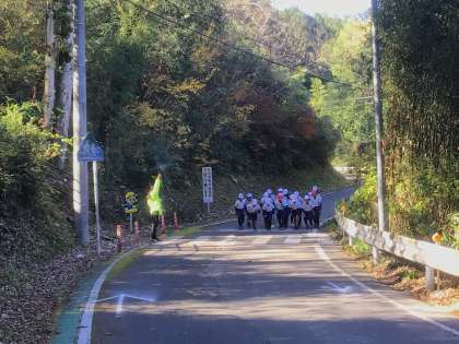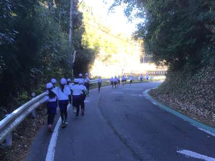 スタートしたら、豊栄橋を通過して、豊栄神社の下で折り返します。最後には地獄の坂道が待っています。運動場を1周すると約1,400mのコースです。