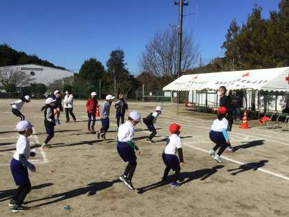 準備体操も「エアー縄跳び」や「グリコのポーズ」など、退屈せずに取り組める内容が多く、楽しそうに行っていました。