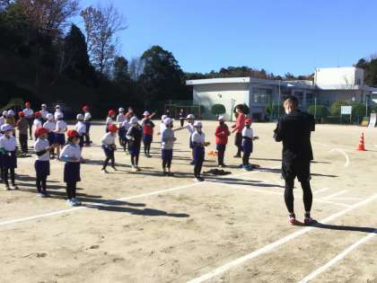 小さく前へ倣えをします。肘の角度は90度で、両手の幅は肩幅に開きます。手には力を入れすぎないように、生卵を掴むイメージで軽く握ります。