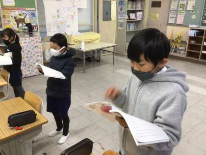 今日は、最初の部分の読み取りをした後、音読練習をしました。