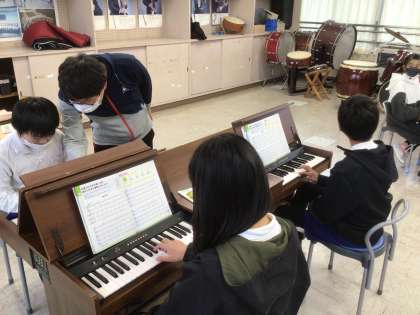 12/6 和音のひびきを味わおう(6年生 音楽) 公開日 2021/12/07 更新日 2021/12/07 お知らせ 「雨のうた」という曲をリコーダーとアンサンブルオルガンを使って合奏しました。 リコーダーを吹くときは人のいない方に向くなどの配慮をしなければならないものの、できることが少しずつ増えてきているのは嬉しいことです。オミクロン株の感染がこれ以上広がらないことを祈るばかりです。