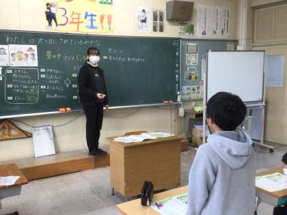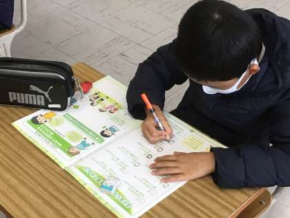 道徳の時間に、「豊田市子ども条例」に関するリーフレットを見ながら、人権について学びました。