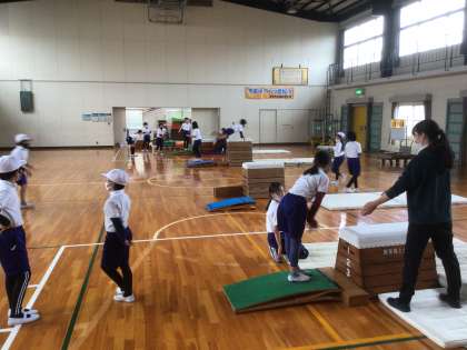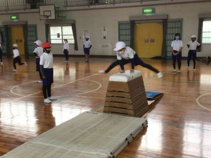 12/8 跳び箱運動(3・4年生 体育) 公開日 2021/12/08 更新日 2021/12/08 お知らせ 跳び箱の練習です。 それぞれが挑戦したい技を決めて、台上前転や開脚跳びなどの練習に取り組みました。
