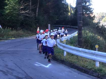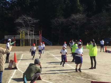 12/9 とよまつマラソン(中学年) 公開日 2021/12/09 更新日 2021/12/09 お知らせ 中学年の折り返しは、豊栄神社の下あたりです。距離は1400mとぐんと長くなります。 試走会で最後にバテてしまった経験を教訓にして、前半はペースを抑え気味です。策士が多いようです。