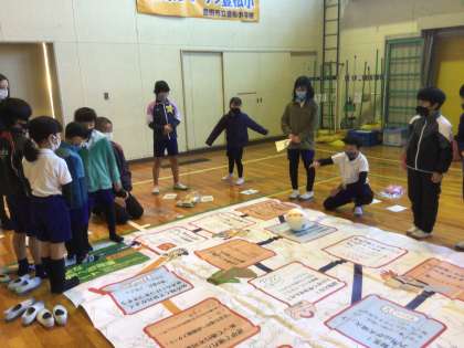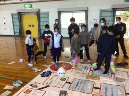 12/9 防災キャンプ(防災すごろく) 公開日 2021/12/09 更新日 2021/12/09 お知らせ 松平地域会議で作成した「松平防災すごろく」をしました。 6つの防災グッズ(ラジオ、懐中電灯、乾電池、救急用品、笛、スリッパ)の中から3つを選び、トラブルを回避しながら避難するすごろくです。 楽しみながら、防災グッズの大切さが学べました。