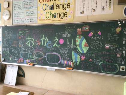 5年生教室の黒板に、おかえりメッセージがありました。 気持ちが嬉しいですね。