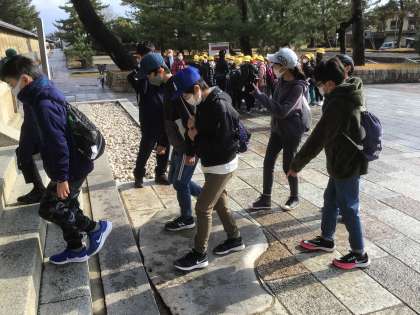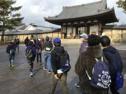 法隆寺に着きました。 南大門にある「願いが叶う鯛石」を踏みしめて中に入りました。
