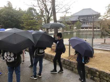 今から外に出ようというタイミングで雨が降り出しました。 慌ててバスに傘を取りに戻る子もいました。