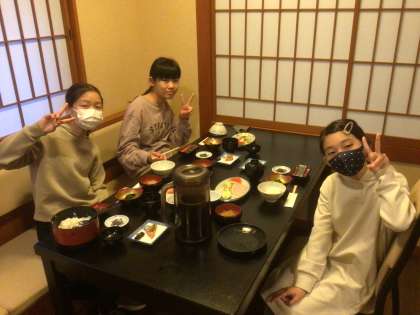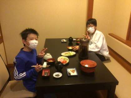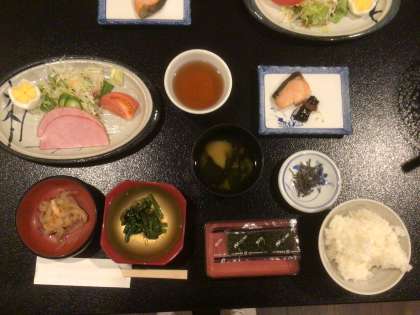朝ごはんです。ご飯と味噌汁です。 バイキングもいいけど、こういうメニューもホッとします。