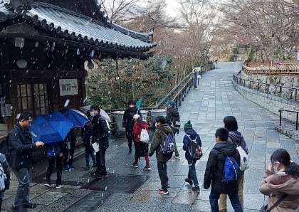 雪が降ってきました。 積もることのない、いい思い出になるくらいの、丁度いい降り方です。