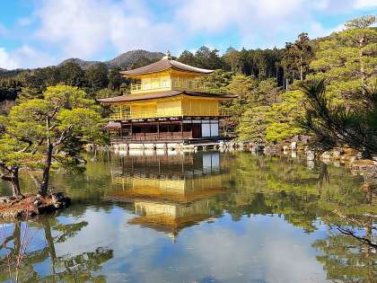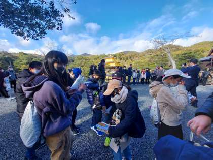 12/18修学旅行53(金閣) 公開日 2021/12/18 更新日 2021/12/18 お知らせ 修学旅行最後の見学場所です。 天気もよくなりました。風もそれほど強くありません。池に映った金閣もまぁまぁきれいです。