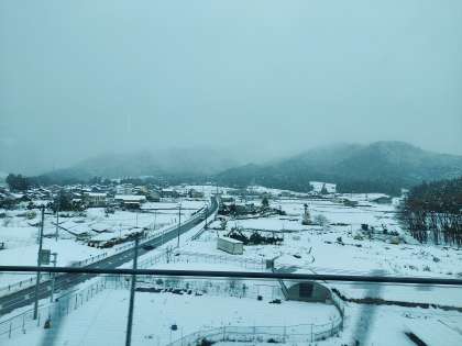 12/18修学旅行59(雪・雪・雪) 公開日 2021/12/18 更新日 2021/12/18 お知らせ 鈴鹿あたりを走行中です。辺り一面雪景色です。 高速道路上には積もっていないので、バスは快適に走行しています。